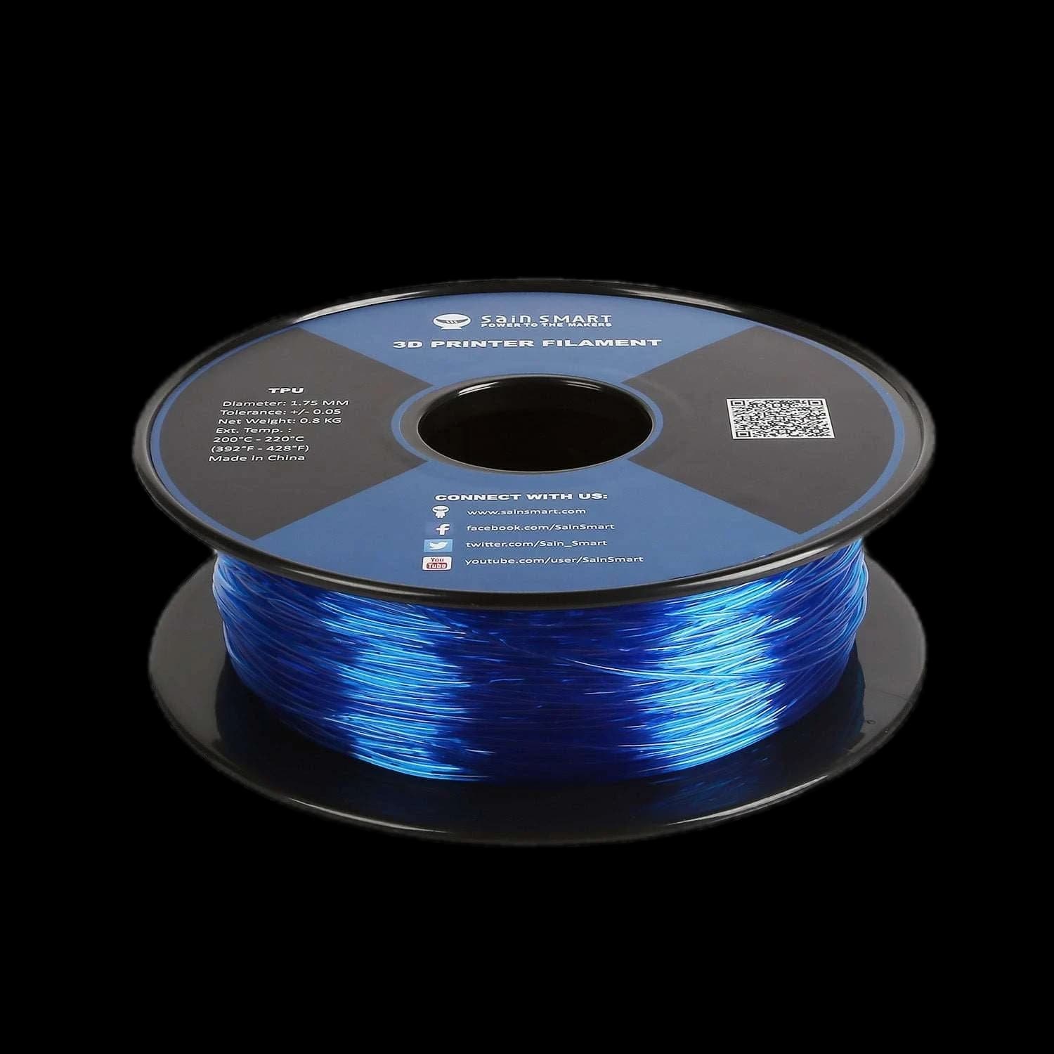 SainSmart TPU filament is known for its high strength and flexibility, resembling a hybrid of plastic and rubber. With a 95A hardness, it offers excellent abrasion resistance and low compression compared to rubber parts, especially at higher infill. Unlike common filaments like PLA and ABS, TPU must be printed much slower. The Rep-Flex TPU material is vacuum-sealed with desiccant. It features a 1.75mm diameter (±0.05mm), total spool weight 1kg (net weight 0.8kg). Recommended extruder temperature is 195-230°C, and platform temperature 40-60°C. Ideal for printers with direct drive extruders and 0.4-0.8mm nozzles. For Bowden extruders, print slowly (15-30mm/s), disable retraction, and turn on cooling after the first layer. Slow printing is key to avoiding issues.