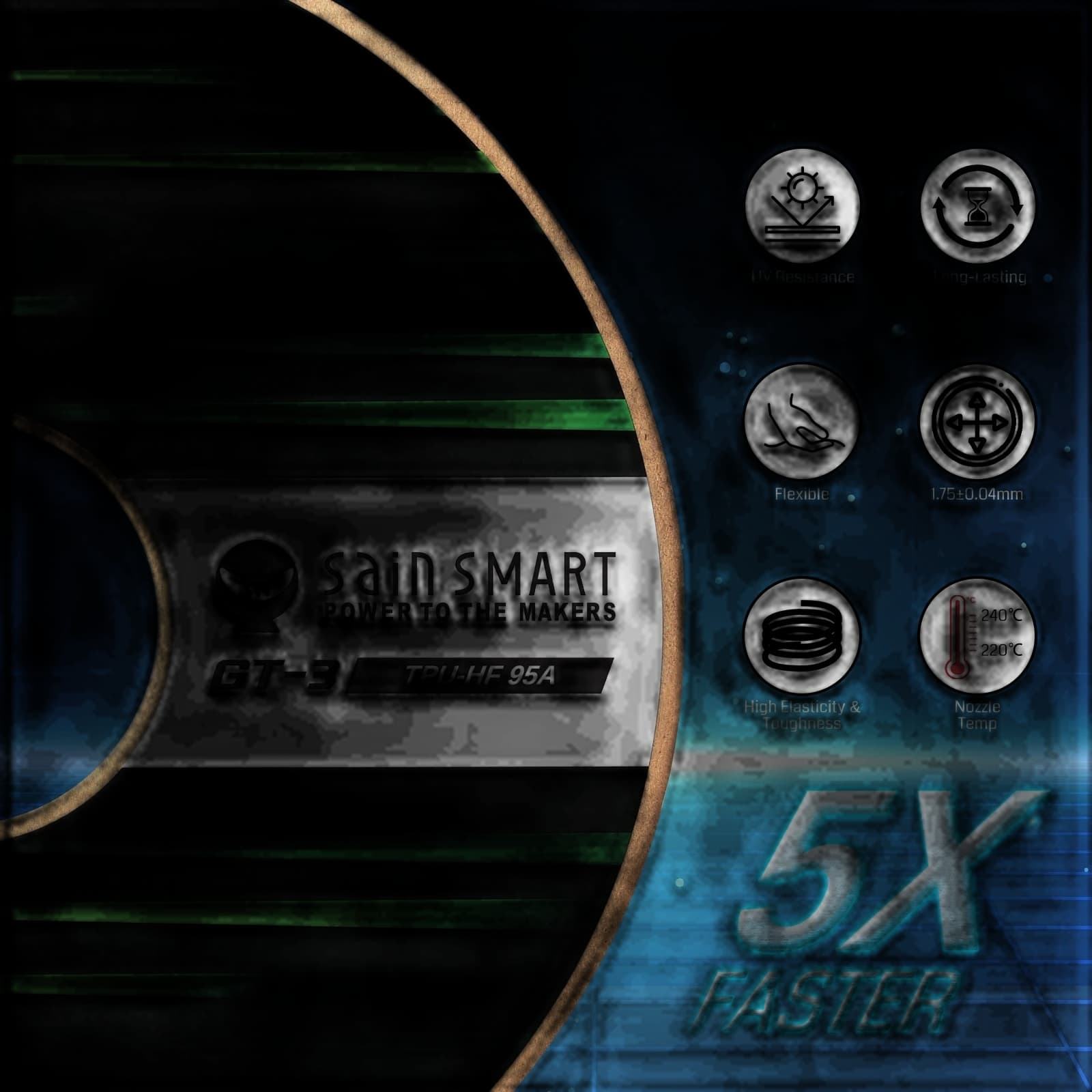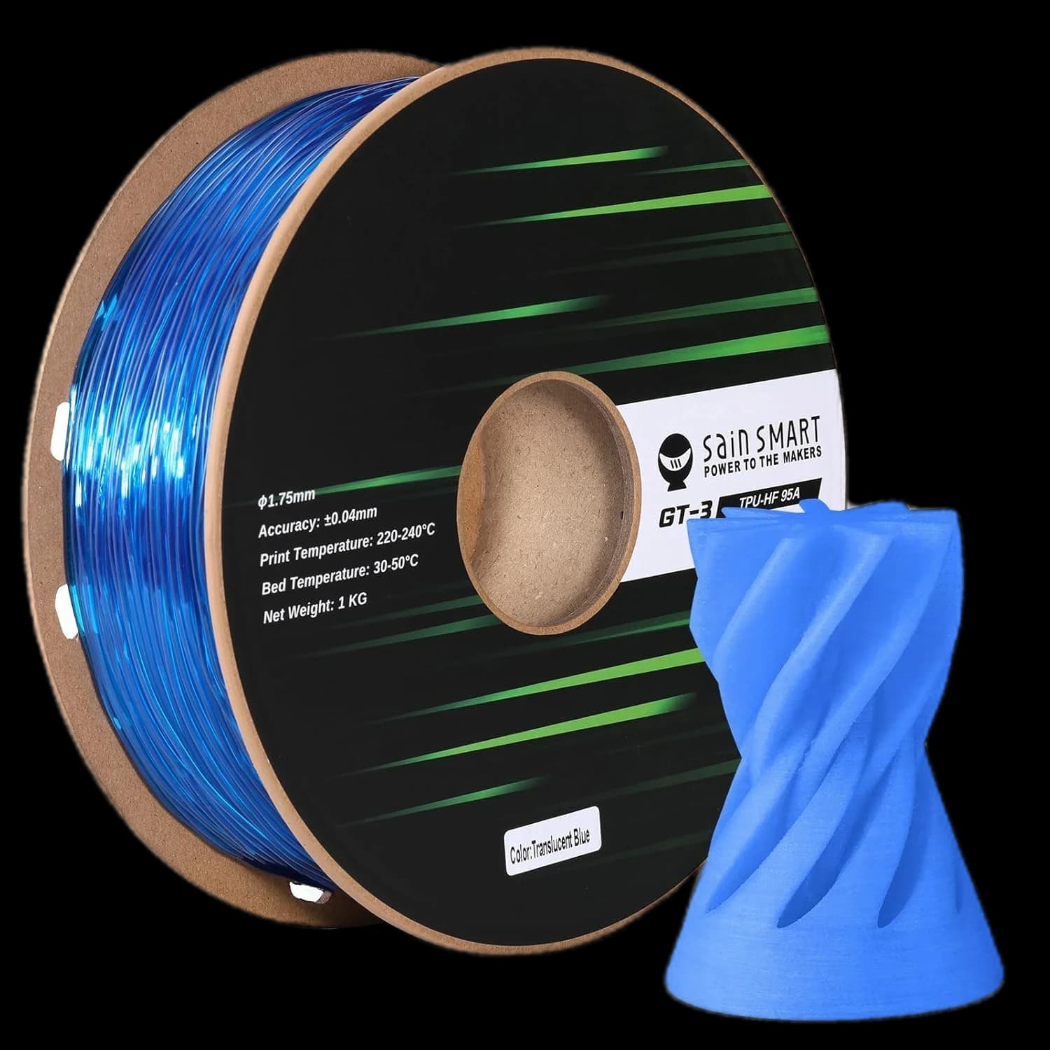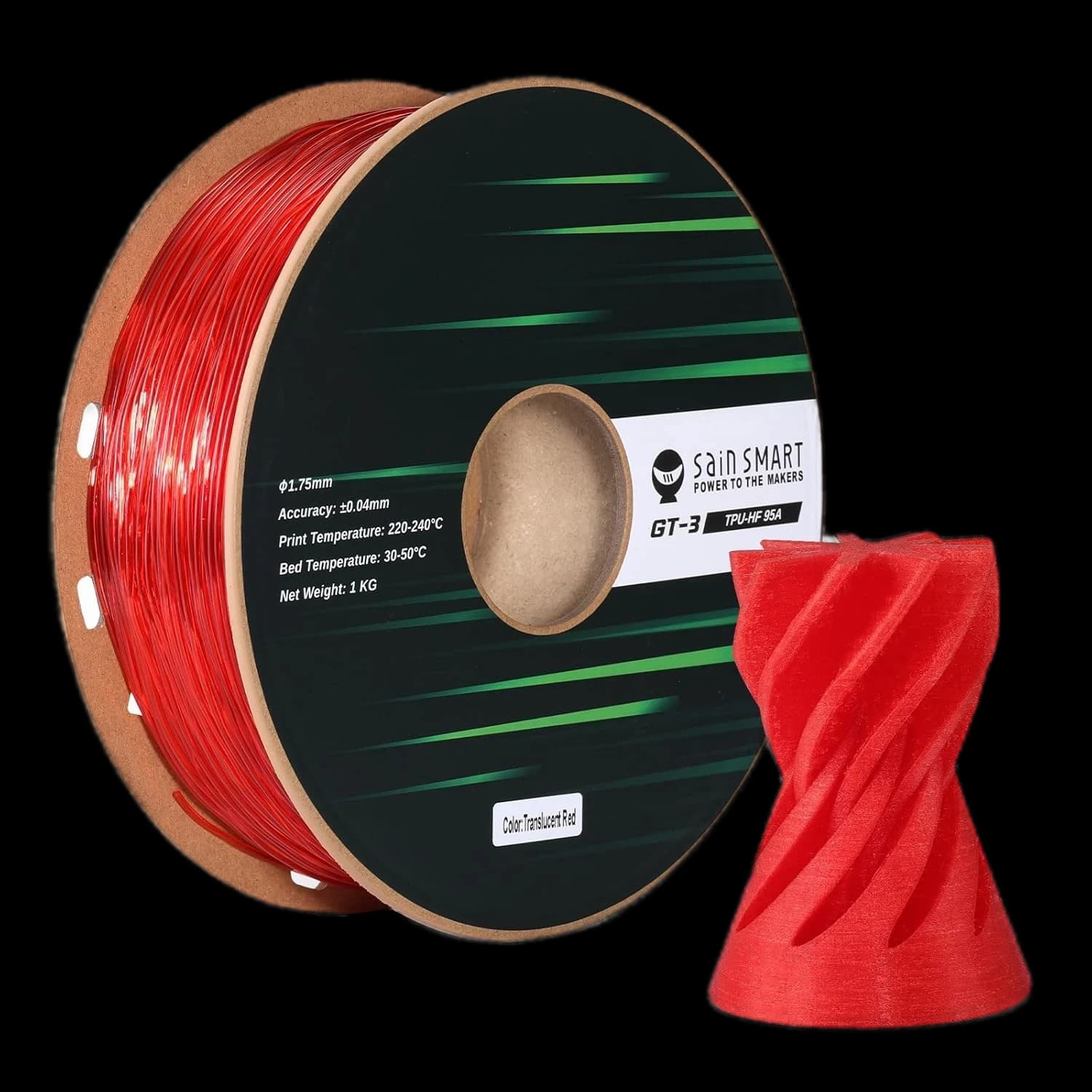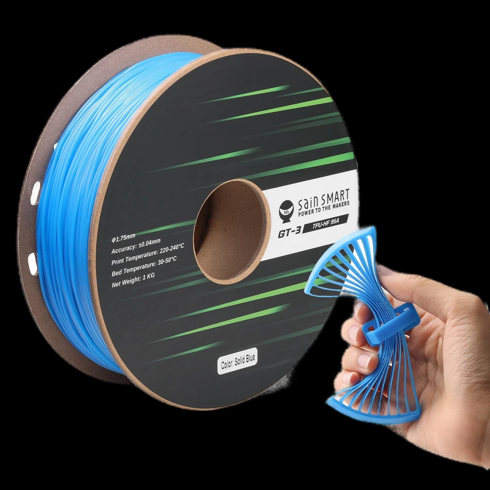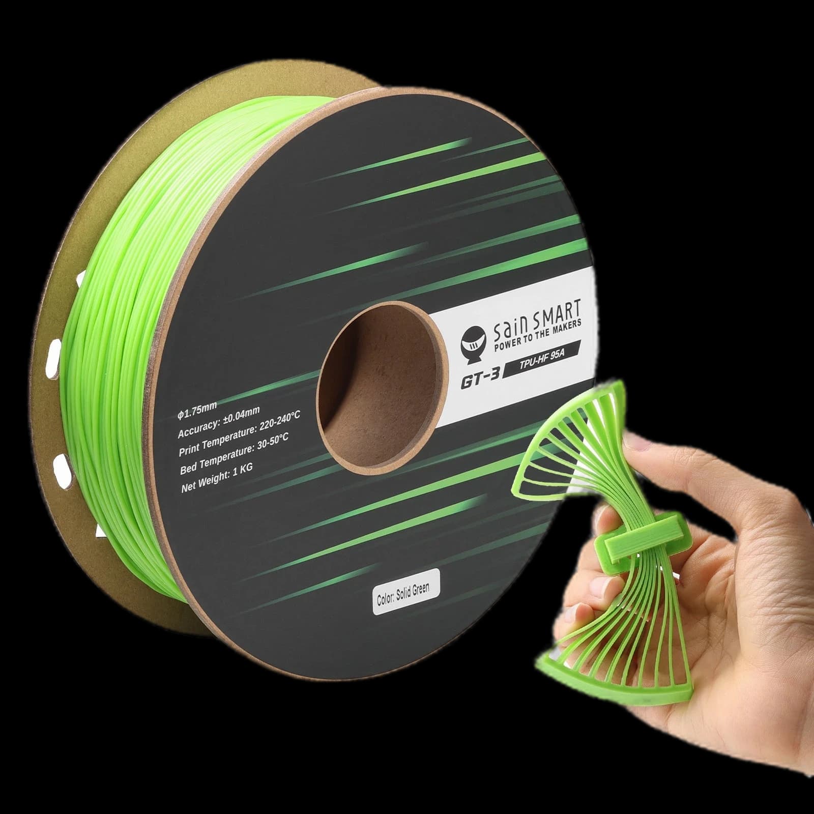 Découvrez le filament TPU flexible 95A SainSmart GT-3 à grande vitesse, conçu pour l'impression 3D rapide. Ce filament résistant aux UV est jusqu'à 5 fois plus rapide que le TPU standard, parfait pour produire des impressions résistantes et élastiques avec facilité. Avec une tolérance de précision de ±0,04 mm et un diamètre de 1,75 mm, il garantit des résultats de haute qualité et précis à chaque fois. Disponible dans une large gamme de couleurs, notamment Noir, Blanc, Rouge, Jaune, Bleu, Vert et Transparent, il offre des options polyvalentes pour vos projets. Compatible avec la plupart des imprimantes 3D, y compris Bambu Lab, cette bobine de 1 kg est idéale pour les professionnels et les amateurs à la recherche de vitesse et de flexibilité. Élevez votre expérience d'impression 3D avec le SainSmart GT-3 TPU.