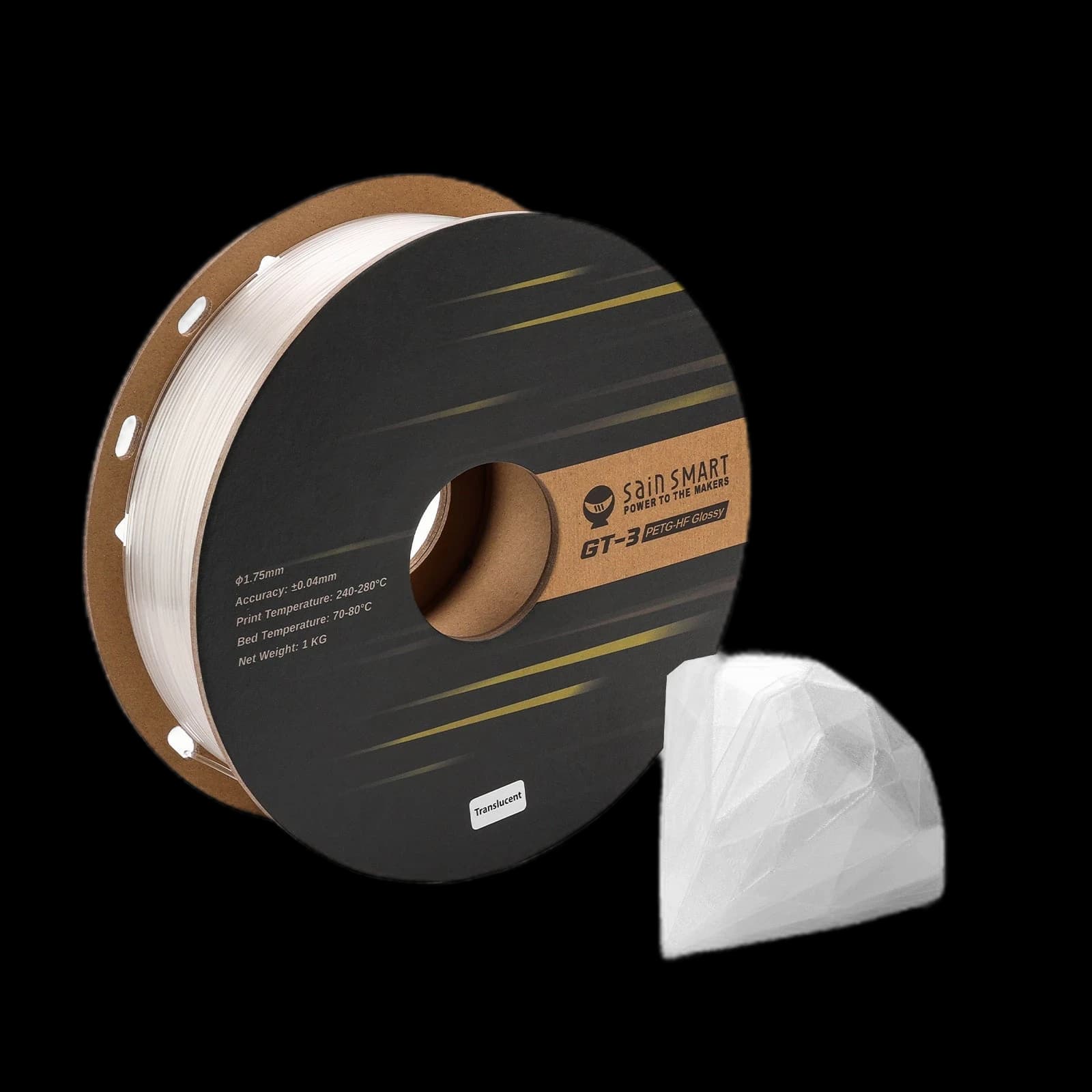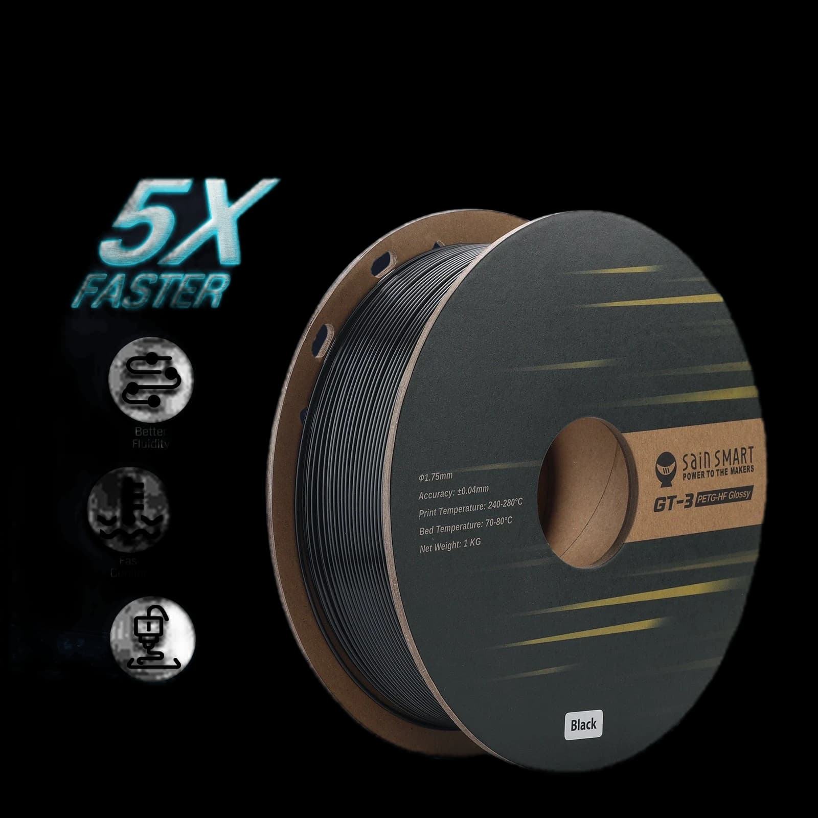 SainSmart GT-3 High Speed PETG Filament, Glossy, 1.75mm, +/-0.04mm, 1KG. Profitez d'une stabilité dimensionnelle améliorée et dites adieu aux déformations grâce à ce filament à haute fluidité. Il produit des impressions lisses, sans gauchissement, avec une excellente adhérence des couches et un retrait facile des supports. Bien qu'il soit résistant, il n'est pas cassant, offrant l'équilibre parfait entre résistance et flexibilité pour des pièces durables et résistantes au stress. Il est livré dans un emballage sous vide professionnel pour préserver la qualité et les performances.